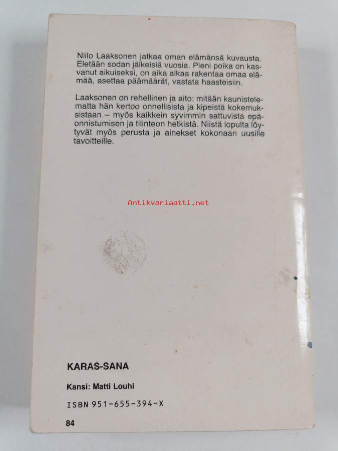 Tyydyttävä. Hieman taitejälkeä kansissa, hieman nuhruisuutta kansissa, selkämyksessä hieman vinoutta, selkämyksessä lukutaittumaa. sivujen reunassa pientä läikkää/aaltoilua