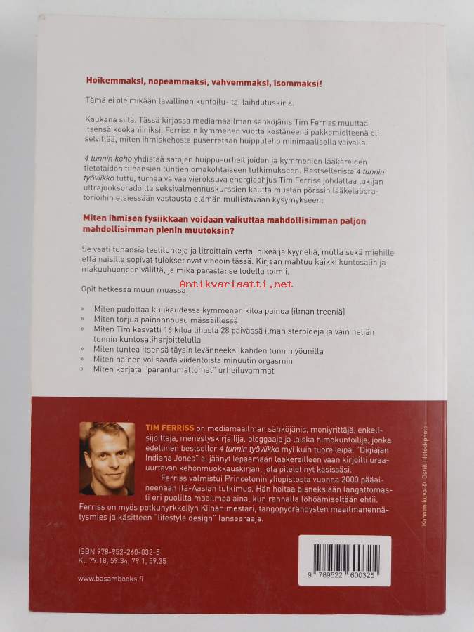 Muu(t) tekijä(t): Leena Siitonen, Tanja KielinenAlkuteos: 4-Hour Body: An Uncommon Guide to Rapid Fat-Loss, Incredible Sex, and Becoming Superhuman