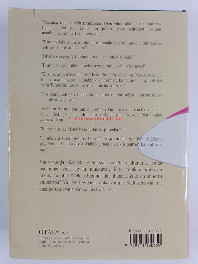 Urho Kekkonen-sarja (7 kirjaa) : Urho Kekkonen 1936-1944 Myrrysmies ; Urho Kekkonen 1944-1950 Vonkamies ; Kuningastie ; Presidentti ; Taistelu puolueettomuudesta ...