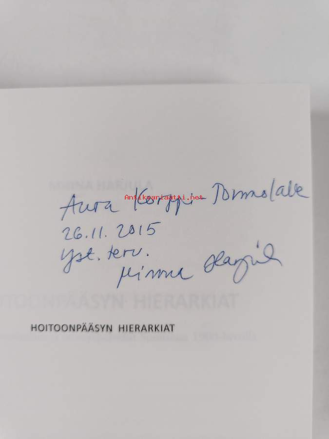Hoitoonpääsyn hierarkiat : terveyskansalaisuus ja terveyspalvelut Suomessa 1900-luvulla (signeerattu, tekijän omiste)