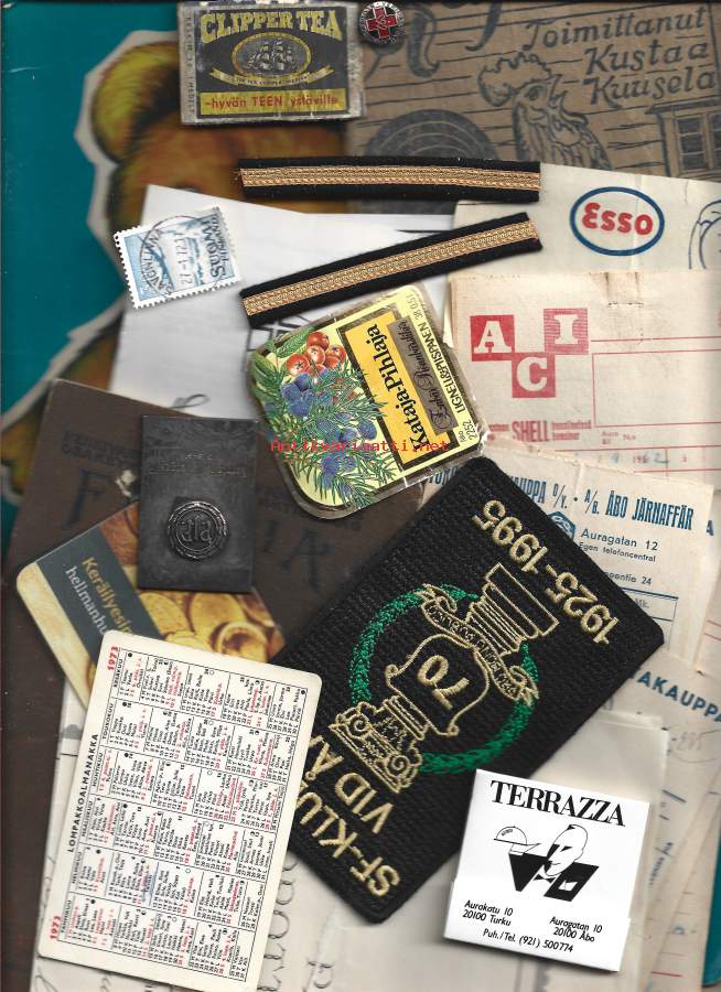 Sekal erä valokuvia, lomakkeita, tarroja yms n 15 kpl
