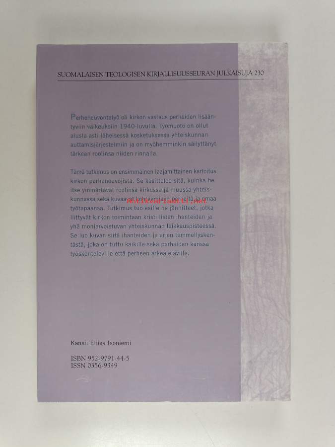 Sarja: Suomalaisen teologisen kirjallisuusseuran julkaisuja 230Asiasanat: seurakuntatyö, seurakunnat, perheneuvonta, väitöskirjat, perheet, kirkko, yhteiskunta, ammattikuva, ammatti-identiteetti, perhetyö, perheneuvojat