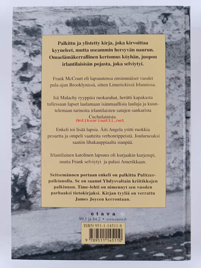 Muu(t) tekijä(t): Juhani LindholmAlkuteos: Angela's ashesAsiasanat: Irlanti, pulitzer-voittajat, pulitzer-palkinto