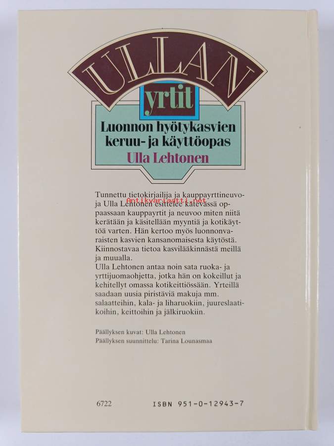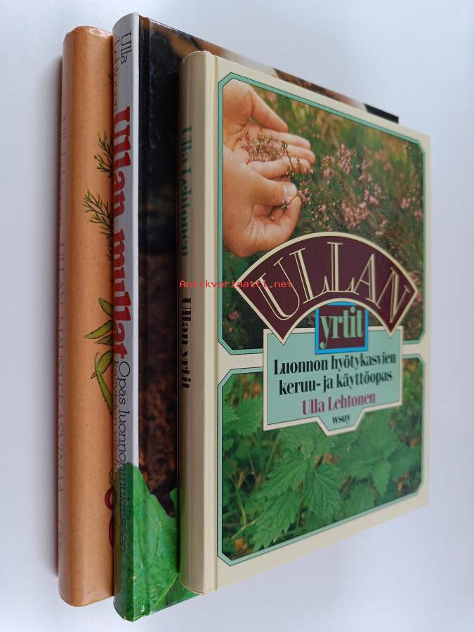 Koko nimi: Ulla Lehtonen -paketti (3 kirjaa) : Ullan yrtit : luonnon hyötykasvien keruu- ja käyttöopas ; Ullan mullat : Opas luonnonmukaiseen kasvisten viljelyyn ja asumiseen ; Ullan maustekasvimaa