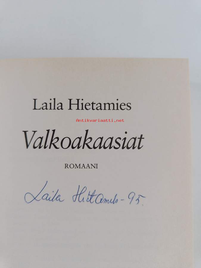 Hyvä. Tarkempi kuntoluokka: K3+ ; Hieman kulumaa. Kansipaperin kunto: joitain repeämiä/kulumaa / teokset sonja ja valkoakaasiat signeerattu