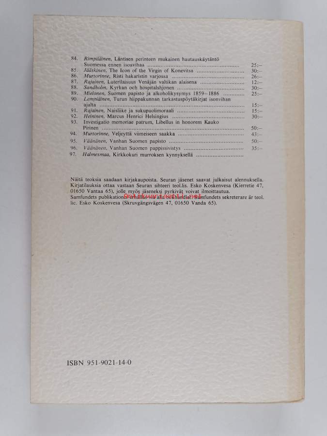 Tyydyttävä. Tarkempi kuntoluokka: K2+ ; Hieman kulumaa, hieman nuhruisuutta, kirjaston poistokirja, selkämyksessä hieman vinoutta, selkämyksessä kevyttä lukutaittumaa