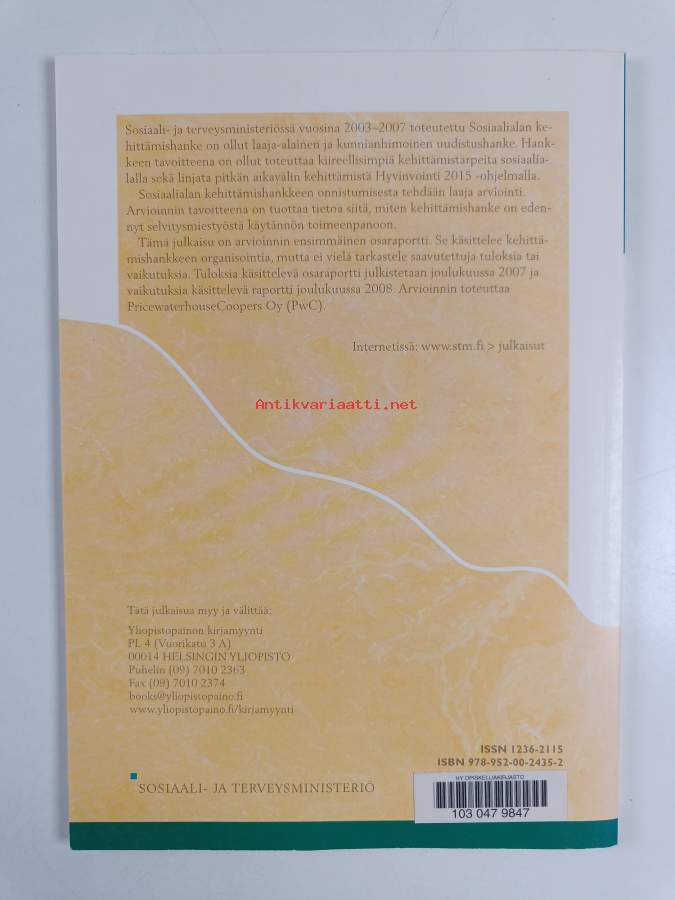 Muu(t) tekijä(t): Mikko WennbergSarja: Sosiaalialan kehittämishankkeen loppuarviointi Osaraportti 1; Sosiaali- ja terveysministeriön selvityksiä 2007:48Asiasanat: arviointi