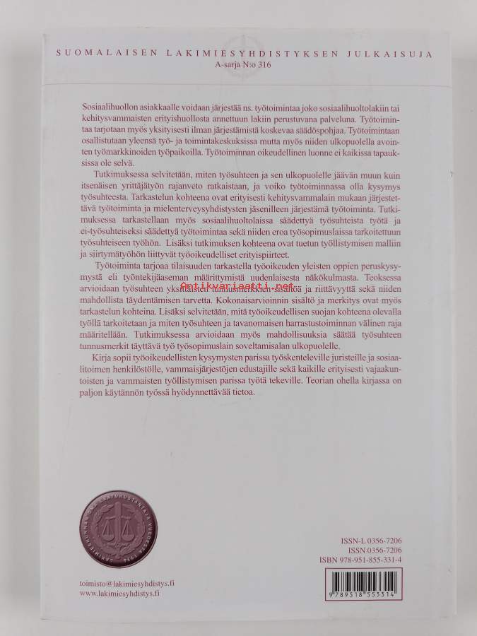 Työsuhteista työtä vai työtoimintaa? Tutkimus vajaakuntoisen tekemän työn oikeudellisesta luonteesta (signeerattu, tekijän omiste)