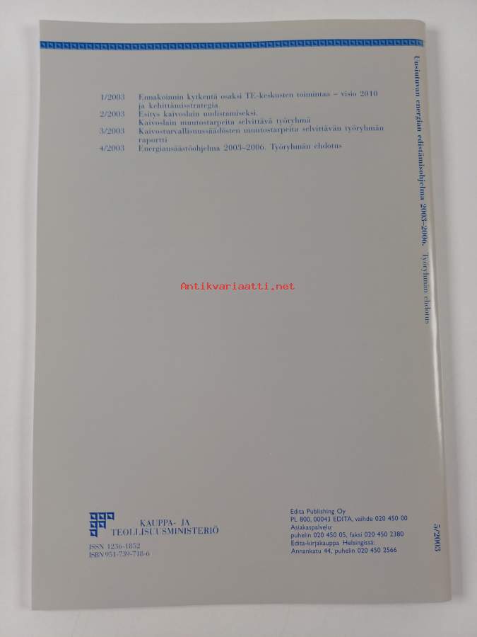 Sarja: Kauppa- ja teollisuusministeriön työryhmä- ja toimikuntaraportteja 5/2003Asiasanat: energiapolitiikka, Energy policy