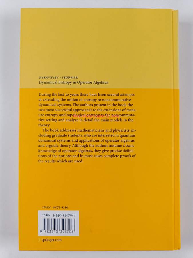Muu(t) tekijä(t): Erling StørmerMerkinnät: omistajamerkintäSarja: A series of modern surveys in mathematics 3. Folge, vol. 50Asiasanat: Entropy, Ergodic theory, Operator algebras