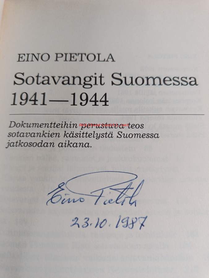 Sotavangit Suomessa 1941-1944 : dokumentteihin perustuva teos sotavankien käsittelystä Suomessa jatkosodan aikana (signeerattu)