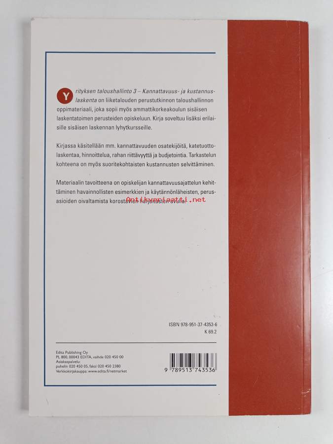 Sarja: Yrityksen taloushallinto 3; PrimaAsiasanat: yritykset, kustannuslaskenta, taloushallinto, kannattavuus
