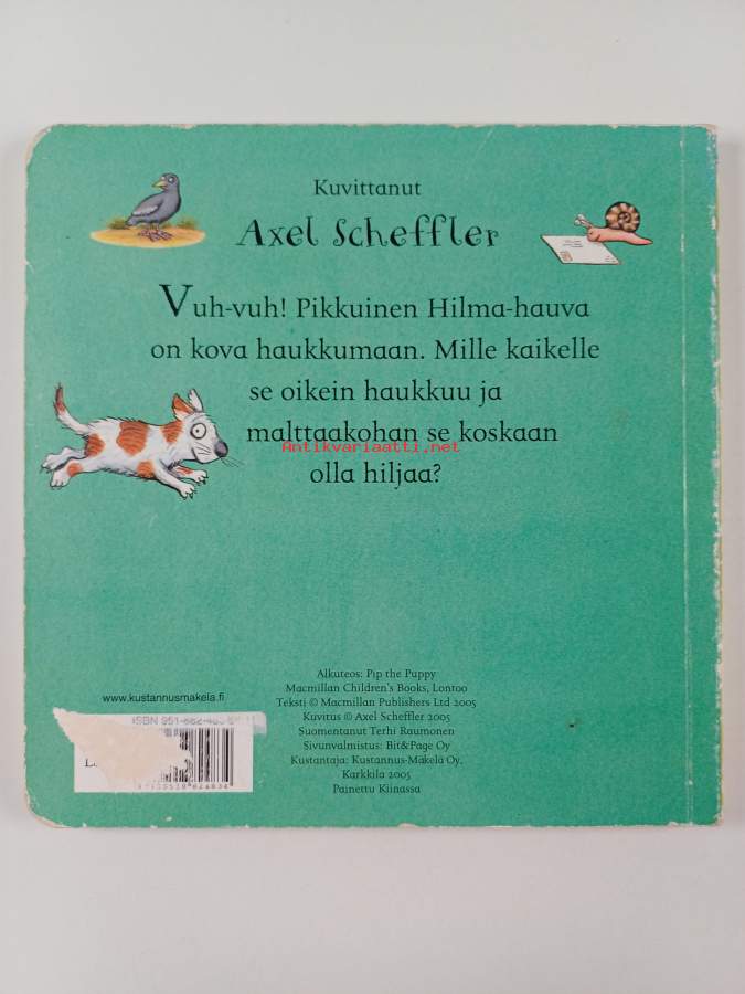 Muu(t) tekijä(t): Terhi RaumonenAlkuteos: Pip the PuppyAsiasanat: eläimet, lastenkirjallisuus, koira, äänet, paksulehtiset kirjat, runokuvakirjat
