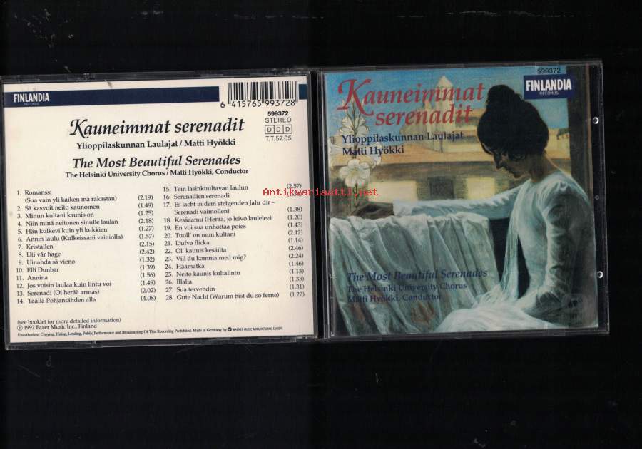 Joht. Matti Hyökki: 1 Annin laulu2 Sua tervehdin3 Häämatka4 Tein lasinkuultavan laulun5 Romanssi6 Kesäaamu7 Gute Nacht8 Uti vår hage9 Hän kulkevi kuin yli kukkien10 Neito kaunis kultalintu11 Täällä pohjantähden alla12 Jos voisin laulaa kuin lintu13 Serenadi14 Es lacht in dem steigen Jahr dir15 Annina16 Uinahda sä vieno17 Niin minä neitonen sinulle laulan18 Vill du komma med mig?19 Sä kasvoit neito kaunoinen20 Minun kultani kaunis on21 En voi sua unhoittaa poies22 Kristallen23 Elli Dunbar24 Ol' kaunis kesäilta25 Tuoll' on mun kultani26 Ljufva flicka27 Serenadien serenadi28 Illalla-Pieni Helposti kuori