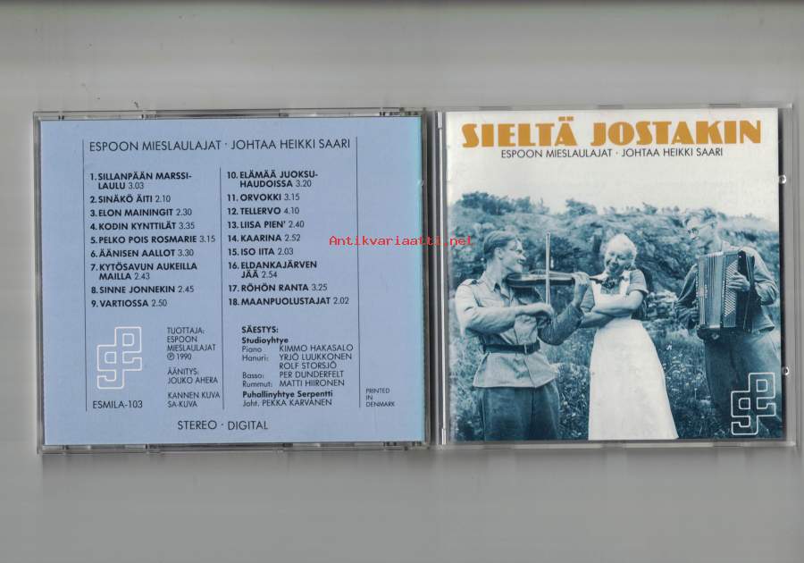 1 Sillanpään Marssilaulu2 Sinäkö Äiti3 Elon Mainingit4 Kodin Kynttilät5 Pelko Pois Rosmarie6 Äänisen Aallot7 Kytösavun Aukeilla Mailla8 Sinne Jonnekin9 Vartiossa10 Elämää Juoksuhaudoissa11 Orvokki12 Tellervo13 Liisa Pien’14 Kaarina15 Iso Iita16 Eldankajärven Jää17 Röhön Ranta18 Maanpuolustajat-Pieni Helposti kuori