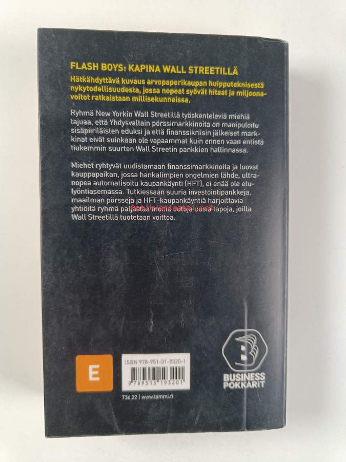 Muu(t) tekijä(t): Jaana Iso-MarkkuSarja: BusinessPokkaritAlkuteos: Flash boysAsiasanat: rahoitusmarkkinat, muutos, sijoitukset, sijoitustoiminta, tuotto, ammattietiikka, arvopaperikauppa, voitot, arvopaperivälittäjät, nopeus, voitot (talous), tietokoneavusteisuus, meklarit, sijoitukset (talous)