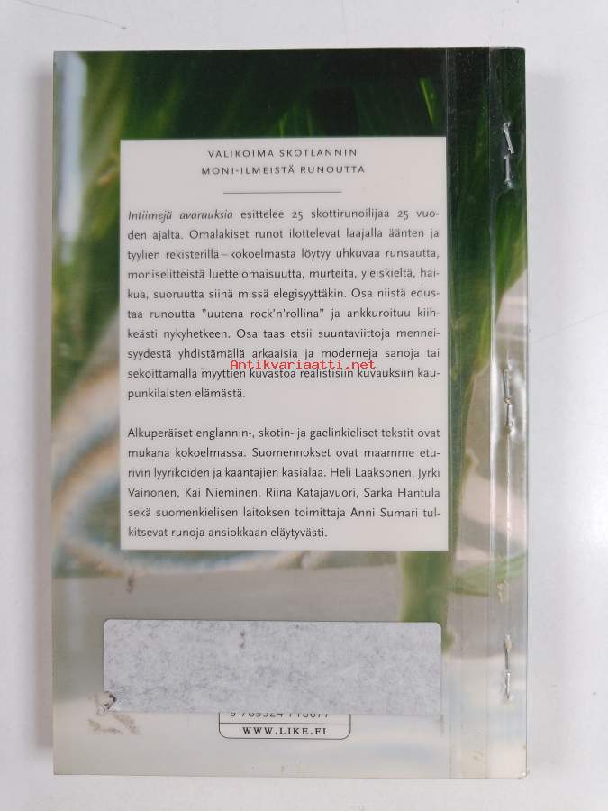 Muu(t) tekijä(t): Ken Cockburn, Robyn Marsack ym.Alkuteos: Intimate expanses : XXV Scottish poems 1978-2002Asiasanat: gaeli