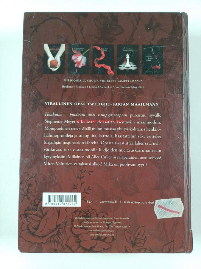 Muu(t) tekijä(t): Pirkko (suom.) Biström, Marlene (suom.) Sanoukian ym.Alkuteos: The Twilight Saga: The Official Illustrated GuideAsiasanat: vampyyrit, fantasiakirjallisuus, nuortenkirjallisuus, fiktiiviset henkilöt