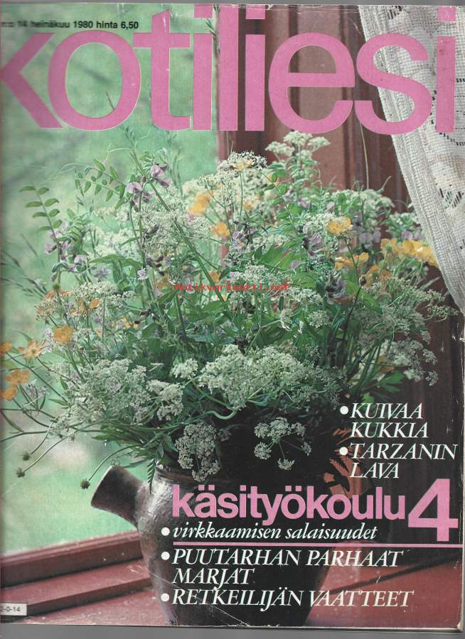 Kotiliesi 1980 nr 14 / Kuivaa kukkia Käsityökoulu - virkkaaminen, puutarhan parhaat marjat, retkeilijän vaatteet