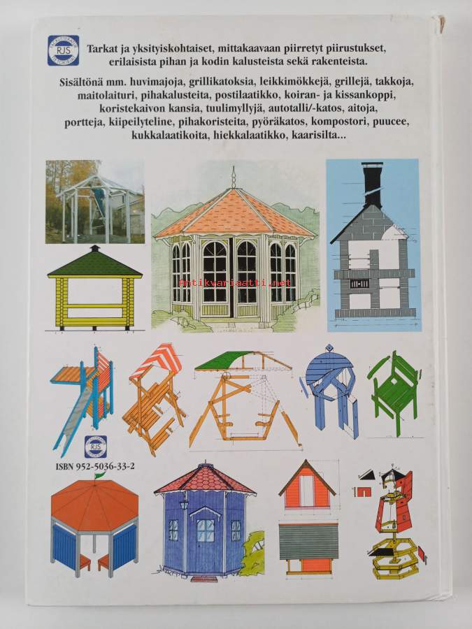 Muu(t) tekijä(t): Jani JohannesSarja: RJS-tietokirjatAsiasanat: valmistus, tuolit, kalusteet, leikkikalut, rakennusohjeet, grillit, puutyöt, pihakalusteet, käymälät, aidat, maitolavat, kaivot, leikkimökit, huvimajat, kompostorit, portit, postilaatikot, autotallit, katokset, keinut, tuulimyllyt, leikkipaikat, koirankopit, pöydät