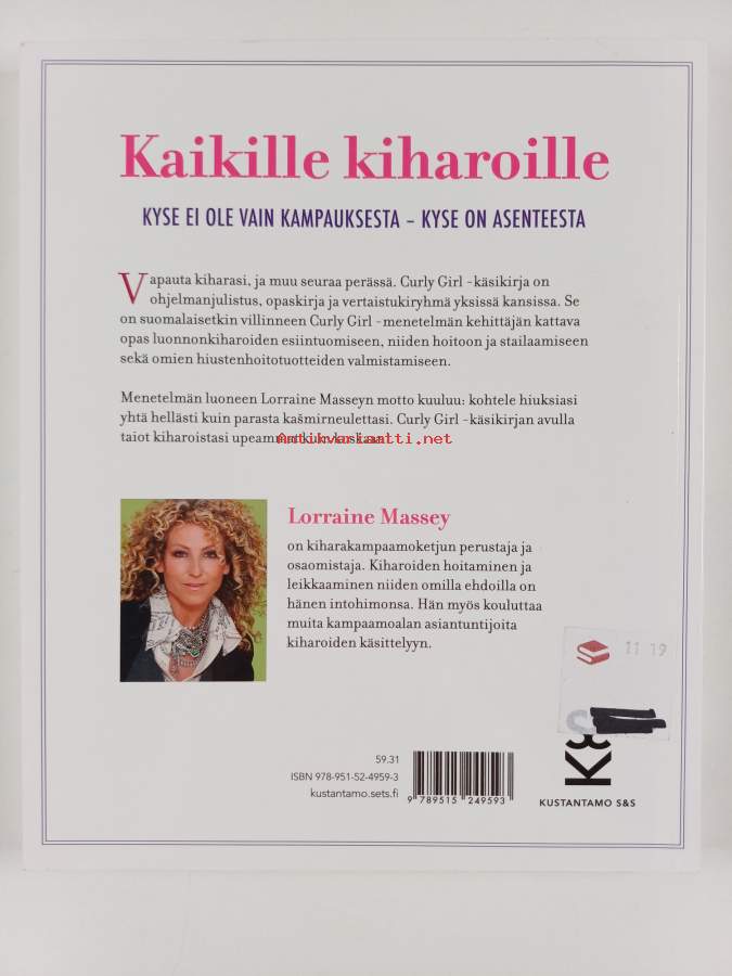 Muu(t) tekijä(t): Arja Kantele, Michele BenderAlkuteos: Curly girlAsiasanat: hiukset, hiustenhoito, hiustenlähtö, hiustenleikkaus