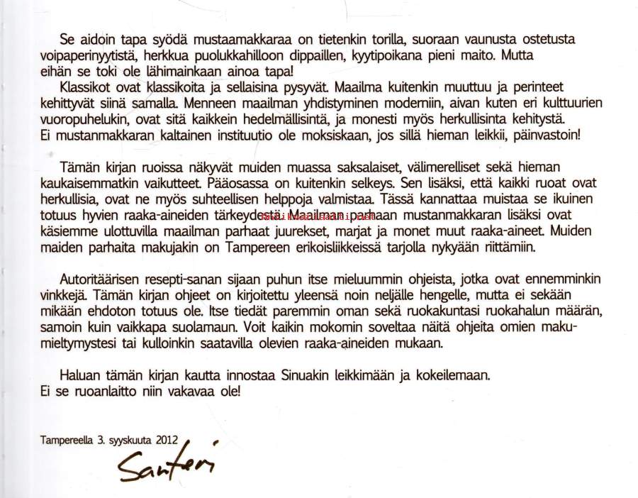 Hyvä. Ensilehdellä kirjoittajan nimikirjoitus ja terveiset henkilölle