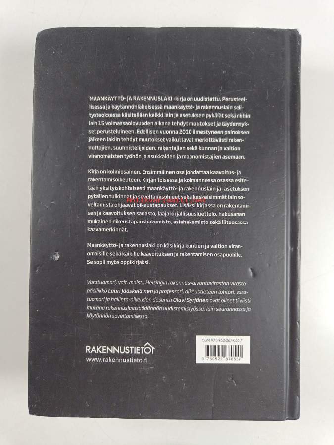 Muu(t) tekijä(t): Lauri Jääskeläinen, Olavi SyrjänenAsiasanat: rakentaminen, lainsäädäntö, kaavoitus, maankäyttö, rakentamismääräykset, yleiskaavoitus, hallintomenettely, muutoksenhaku, maankäyttö- ja rakennuslaki, poikkeusluvat, rakennusluvat