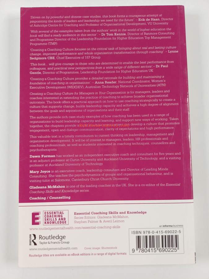 Muu(t) tekijä(t): Dawn Forman, Mary JoyceSarja: Essential coaching skills and knowledgeAsiasanat: yrityskulttuuri, organisaatiokäyttäytyminen, management, Employees, johtamiskoulutus, Corporate culture, Organizational behavior