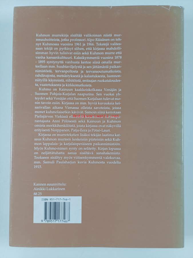 Muu(t) tekijä(t): Alpo RäisänenSarja: Kotiseudun murrekirjoja 12; Suomalaisen Kirjallisuuden Seuran toimituksia 581Asiasanat: historia, suomen kieli, kotiseutukuvaukset, murteet, savolaismurteet, paikannimet, itämurteet, kielennäytteet, kansanelämä