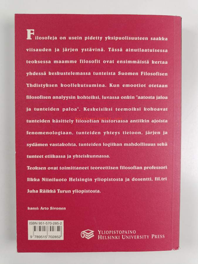 Asiasanat: tunteet, filosofia, etiikka, tieto, kognitio, emotionaalisuus