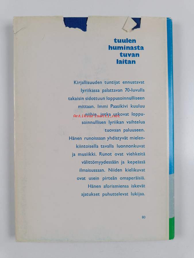 Hyvä. Tarkempi kuntoluokka: K3+ ; Hieman kulumaa kansissa. Kansipaperin kunto: jonkin verran kulumaa/pienoisia repeämiä