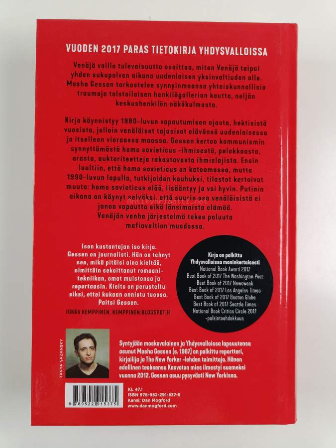 Muu(t) tekijä(t): Ilkka RekiaroAlkuteos: The future is historyAsiasanat: yhteiskuntakuvaus, sisäpolitiikka, poliittinen historia, poliittiset järjestelmät, valta, yhteiskunnallinen muutos, yhteiskuntakritiikki, poliittinen kehitys, totalitarismi, postkommunismi, sukupolvikokemukset