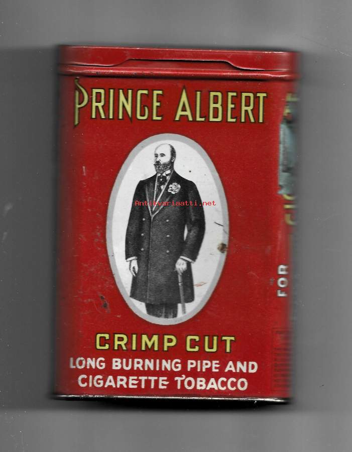 Prince Albert Crimp Cut pipe and cigarette tobacco - tyhjä tupakka-aski tupakkarasia peltiä 8x11x2 cm