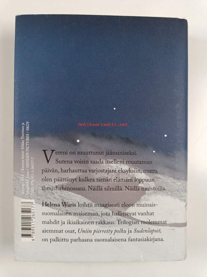 Hyvä. Tarkempi kuntoluokka: K3+ ; Pienoista kulumaa reunoilla ja kulmissa, selkämyksessä hieman vinoutta. Kansipaperin kunto: pientä kulumaa