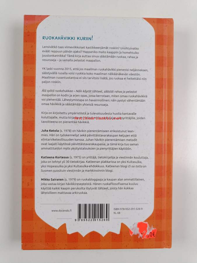Muu(t) tekijä(t): Katleena Kortesuo, Mikko SairanenAsiasanat: ruokaohjeet, kotitaloudet, kuluttajakäyttäytyminen, elämäntapa, ruoka, elintavat, ekologisuus, ympäristötietoisuus, säilytys, kestävä kulutus, biojätteet, tähteet, vähentäminen, ruokahävikki