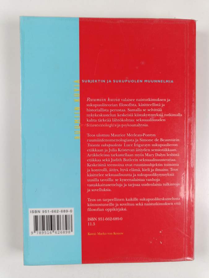 Muu(t) tekijä(t): Malla Rautaparta, Sara Heinämaa ym.Asiasanat: naiset, naisen asema, anoreksia, ruumiinkuva, seksuaalisuus, äitiys, naisellisuus, naistutkimus, filosofia, identiteetti, etiikka, sukupuoliroolit, maskuliinisuus, sukupuolierot, feminismi, psykoanalyyttiset teoriat, sukupuoli, yhteiskunta, fenomenologia, ruumis, käsitteet, lesbous, kieli, psykoanalyysi, subjekti, seksuaalinen identiteetti, sukupuoli-identiteetti, naiskirjallisuus, kieli ja kielet, body image, subjekti (filosofia)