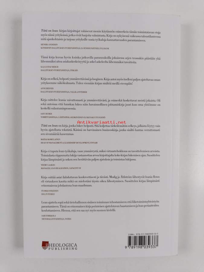 Muu(t) tekijä(t): Maarit TillmanAlkuteos: Detta är leanAsiasanat: yritykset, prosessit, organisaatiot, lean-ajattelu