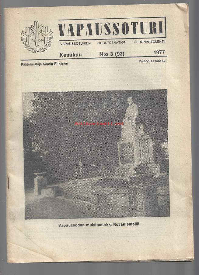 Vapaussoturi 1977 nr 3 Vapaussoturien Huoltosäätiön tiedonantolehti