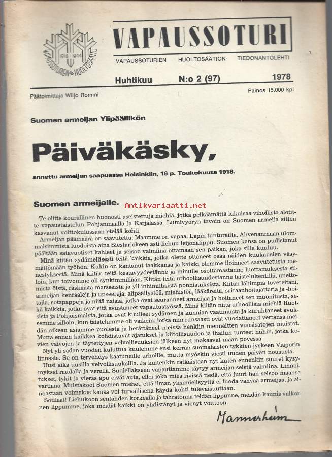 Vapaussoturi 1978 nr 2 Vapaussoturien Huoltosäätiön tiedonantolehti
