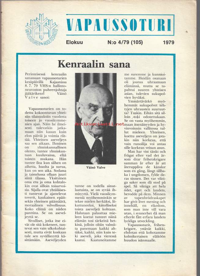 Vapaussoturi 1979 nr 4 Vapaussoturien Huoltosäätiön tiedonantolehti