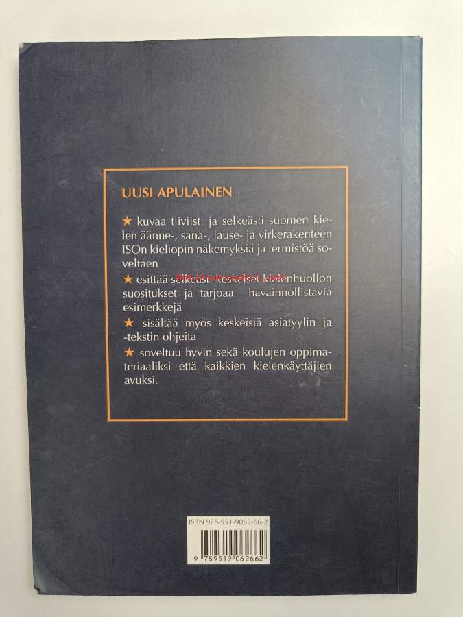 Muu(t) tekijä(t): Mervi Murto, Suvi KaipainenAsiasanat: suomen kieli, kielioppaat, oikeakielisyys, lyhenteet, viestintä, kielioppi, tekstit, kirjallinen viestintä, kielenkäyttö, sanat, kielenhuolto, lauseoppi, äänteet, sijamuodot, sanajärjestys, lausetyypit, sanaluokat, rakenne (ominaisuudet)