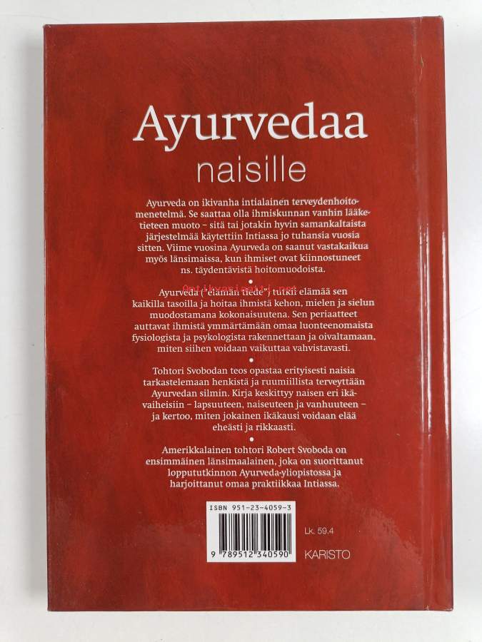 Muu(t) tekijä(t): Satu Tunkelo, Giovanni PierceAlkuteos: Ayurveda for womenAsiasanat: naiset, itsehoito, luontaishoito, ayurveda