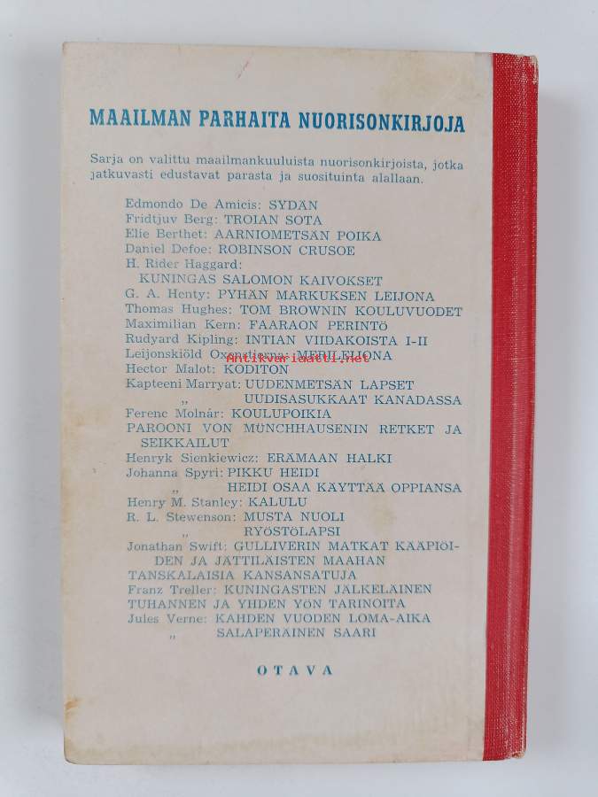 Hyvä. Tarkempi kuntoluokka: K3- ; Hieman kulumaa kansissa, hieman tahraisuutta takakannessa, pienoista kolhua reunoilla ja kulmissa, pienoista rispaantumaa reunoilla ja kulmissa