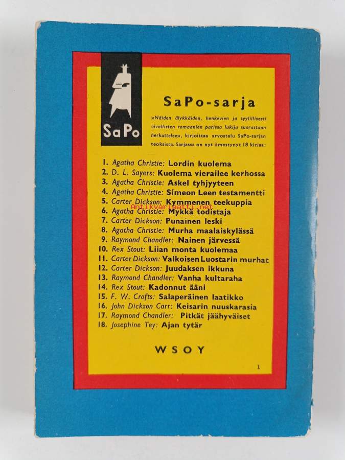 Muu(t) tekijä(t): Helena LuhoMerkinnät: omistajamerkintäSarja: Sapo 2Alkuteos: The unpleasantness at the Bellona Club