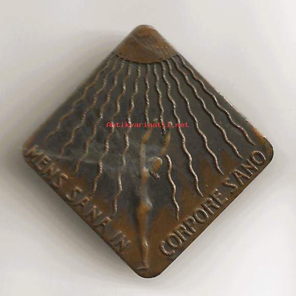 Tyttöjen urheilumerkki pronssin värinen - lukkoneulamerkki rintamerkki 25x25 mm /Suomen Naisten Liikuntakasvatusliitto (SNLL)