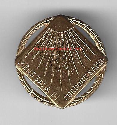 Tyttöjen urheilumerkki pronssin värinen - lukkoneulamerkki rintamerkki 25x25 mm /Suomen Naisten Liikuntakasvatusliitto (SNLL)