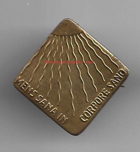 Tyttöjen urheilumerkki pronssin värinen - lukkoneulamerkki rintamerkki 25x25 mm /Suomen Naisten Liikuntakasvatusliitto (SNLL)