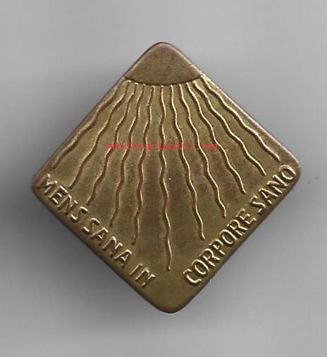 Tyttöjen urheilumerkki pronssin värinen - lukkoneulamerkki rintamerkki 25x25 mm /Suomen Naisten Liikuntakasvatusliitto (SNLL)