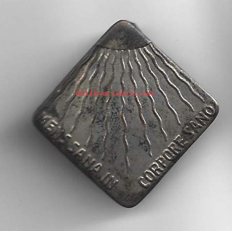 Tyttöjen urheilumerkki pronssin värinen - lukkoneulamerkki rintamerkki 25x25 mm /Suomen Naisten Liikuntakasvatusliitto (SNLL)