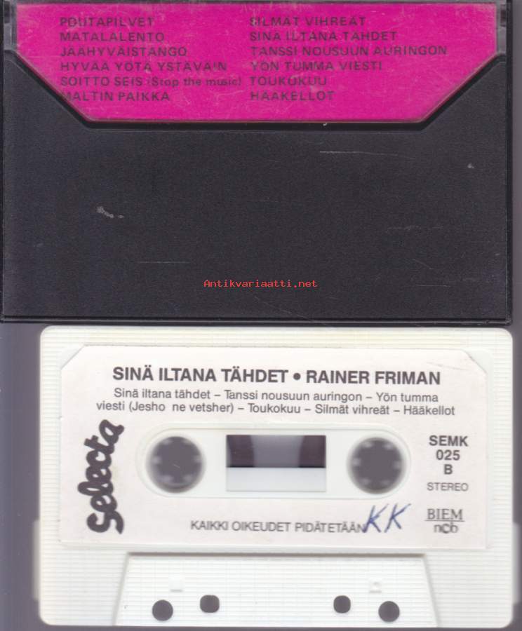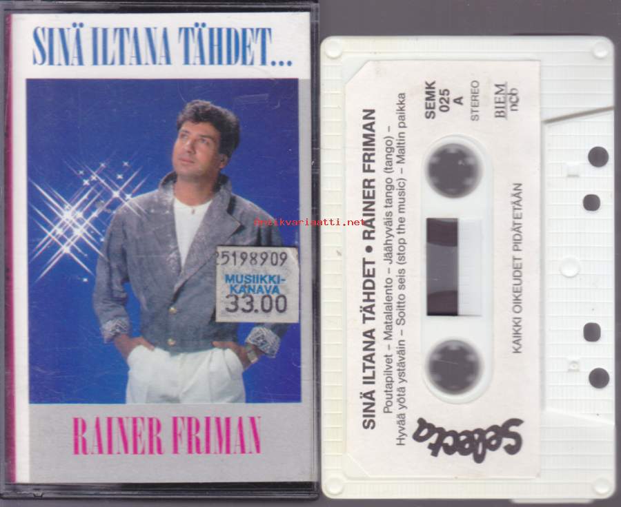 C-kasetti - Rainer Friman - Sinä iltana tähdet. 1988. SEMK 025. 1.Poutapilvet 2.Matalalento 3.Jäähyväistango 4.Hyvää Yötä Ystäväin 5.Soitto Seis